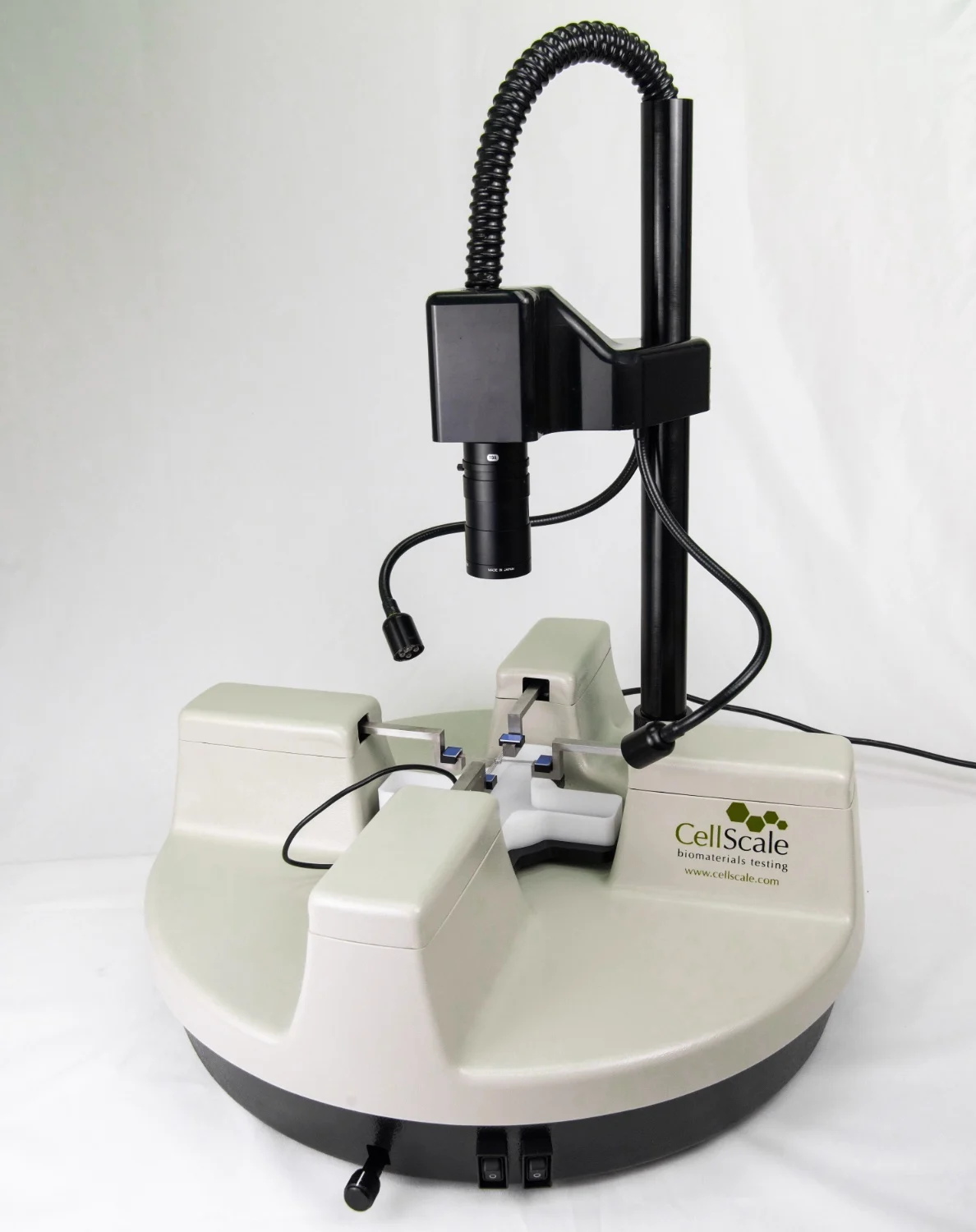 CellScale designs each platform below as a benchtop mechanical tester optimized for research environments where specimens are small, hydrated, and difficult to grip. Compared to other universal testing machines, our mechanical testing systems emphasize repeatable mounting, low-noise measurements, physiologically-relevant testing environments, and imaging integration so strain and deformation can be interpreted in the region that matters.